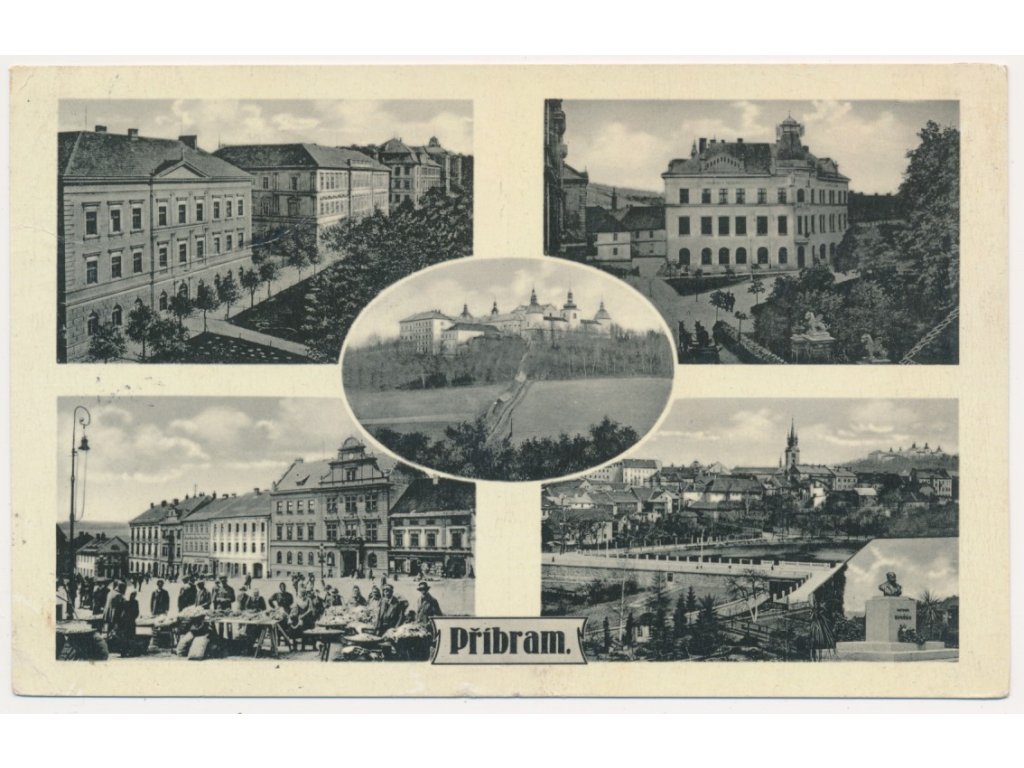 54 - Příbram, 5-ti okénkový záběr dominant města, cca 1936