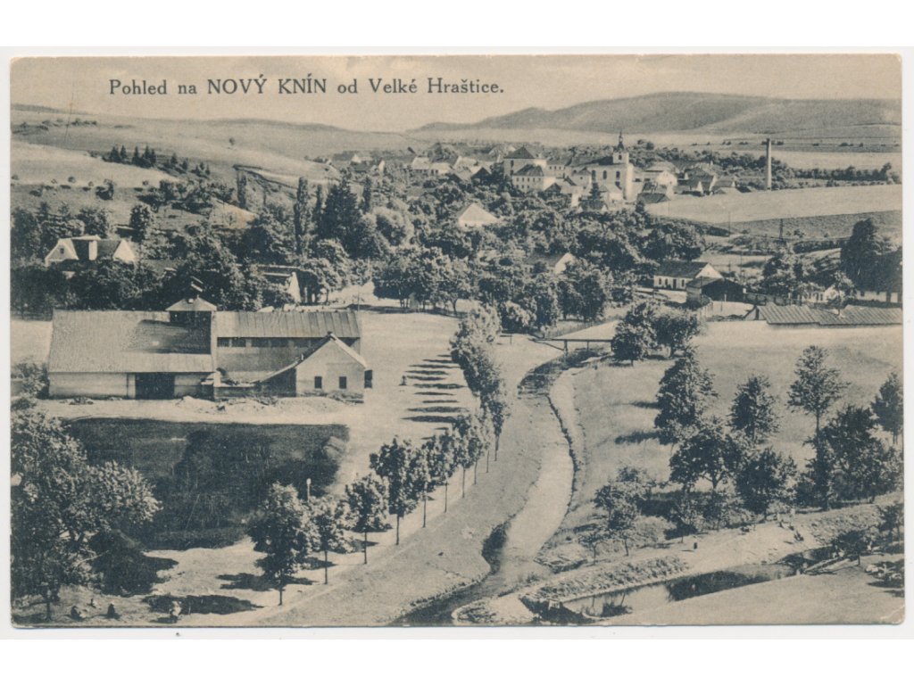 54 - Příbramsko, Nový Knín, celkový pohled od Velké Hraštice, cca 1920