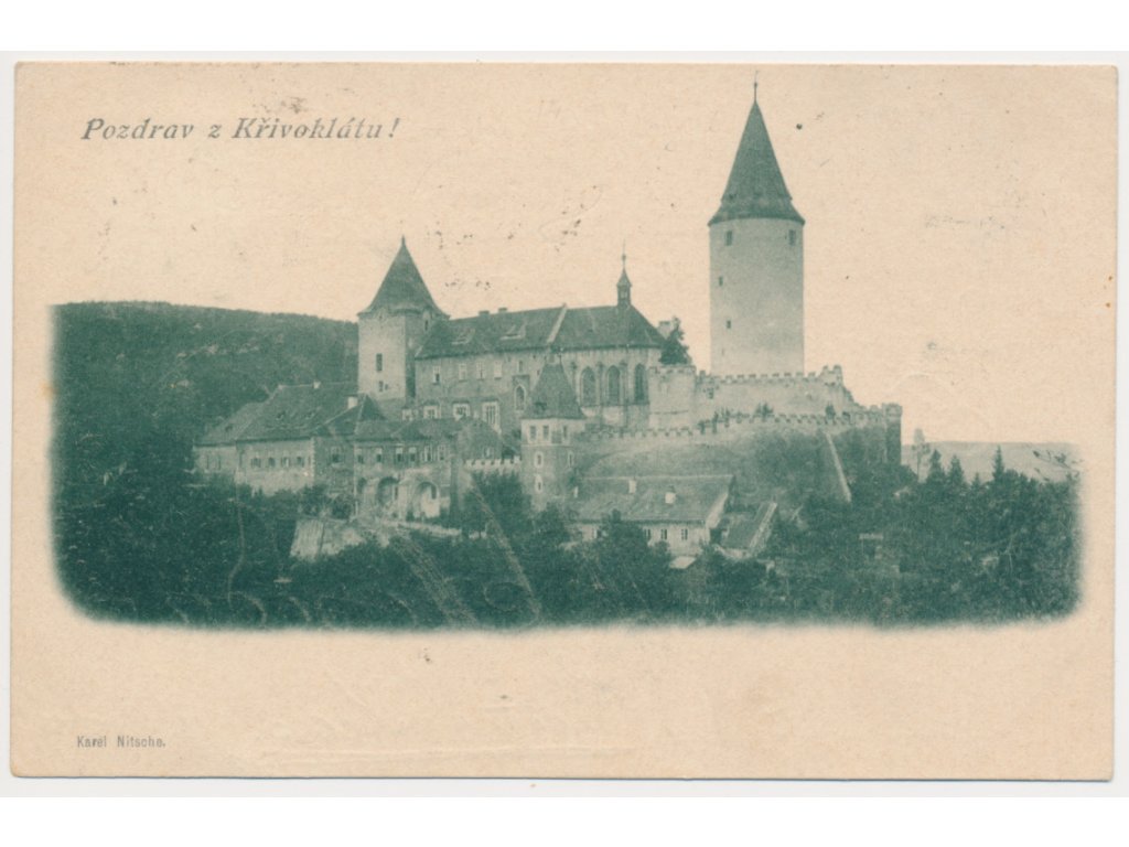 55 - Rakovnicko, Křivoklát, okénková koláž s pohledem na hrad, cca 1899