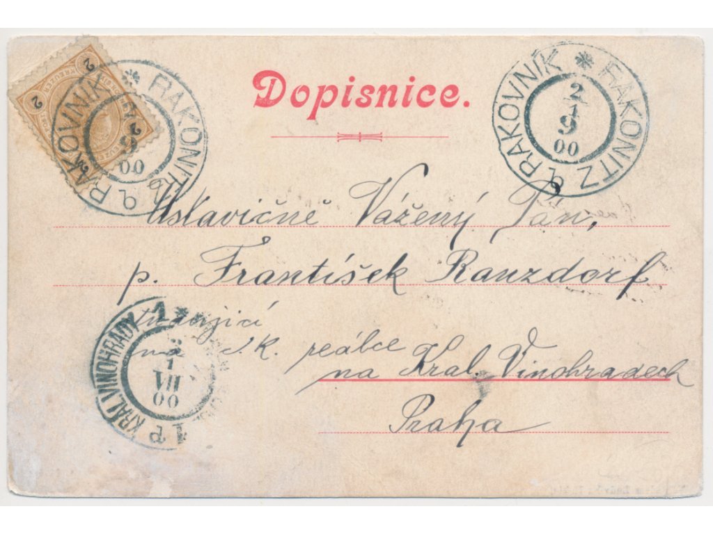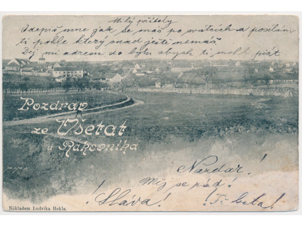 55 - Rakovnicko, Všetaty, celkový pohled na obec, prošlá poštou 1900