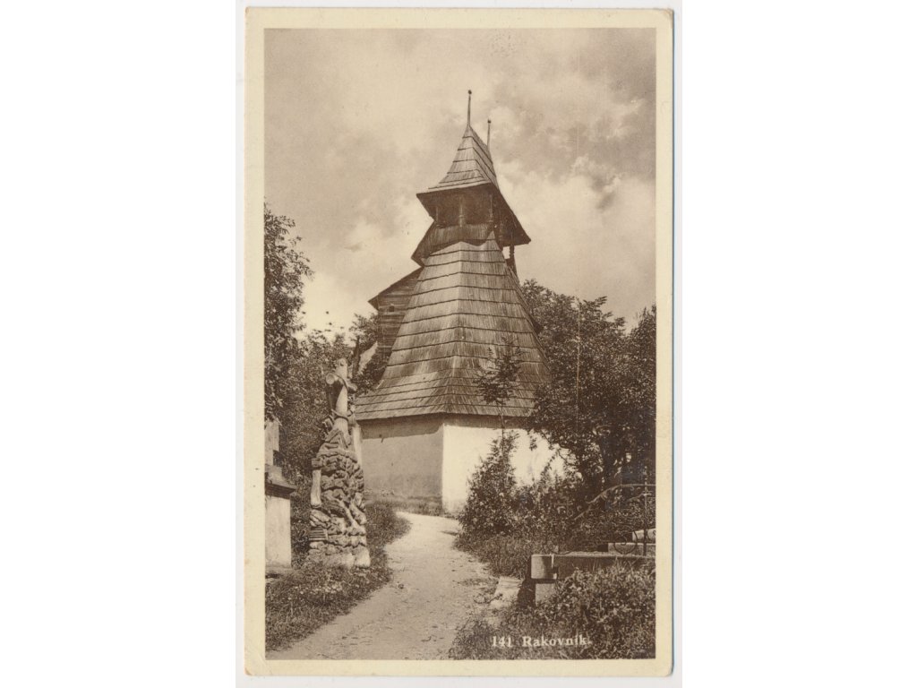 55 - Rakovník, Dřevěná zvonice na rakovnickém hřbitově, cca 1937