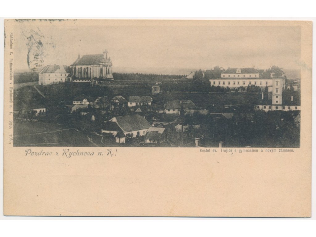 57 - Rychnov nad Kněžnou, Kostel sv. Trojice s gymnáziem a zámkem, 1900