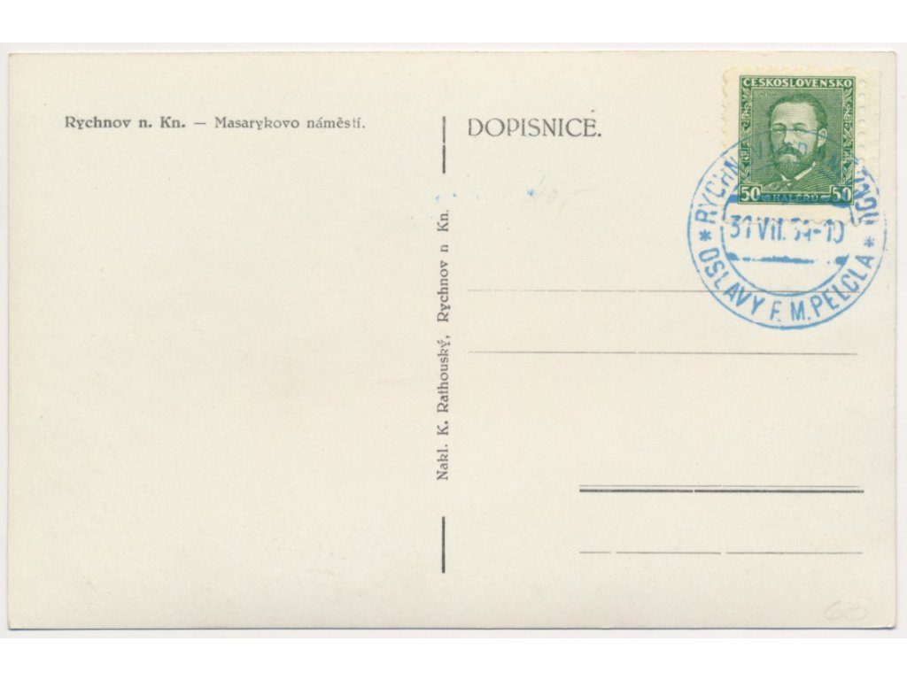 57 - Rychnov nad Kněžnou, pohled na oživené Masarykovo náměstí, 1934