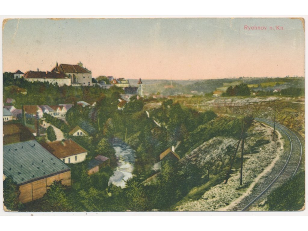 57 - Rychnov nad Kněžnou, pohled na železniční trať, město..., cca 1912