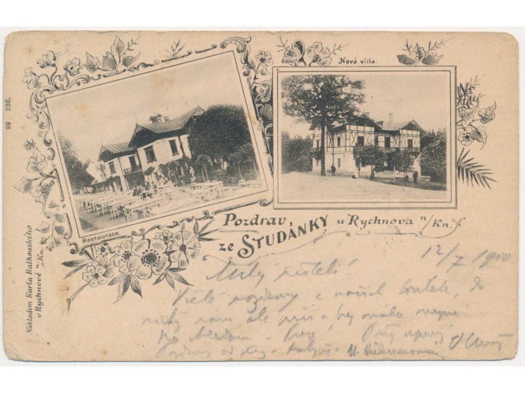 57 - Rychnov nad Kněžnou, Studánka, 2 záběrová koláž dominant, 1900