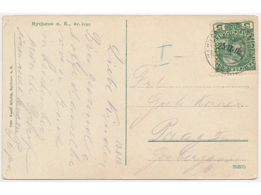 57 - Rychnov nad Kněžnou, vyhlídka Svatý Ivan, oživená partie u řeky, 1916