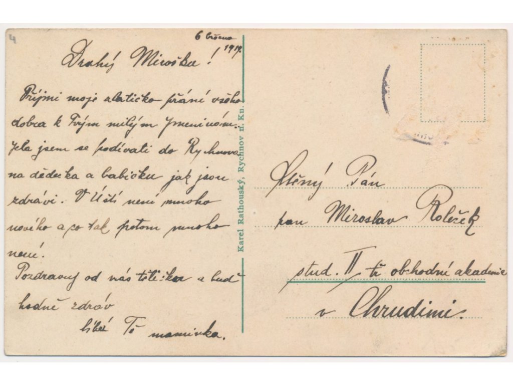 57 - Rychnov nad Kněžnou, Zámek, Oživená partie u řeky, cca 1919