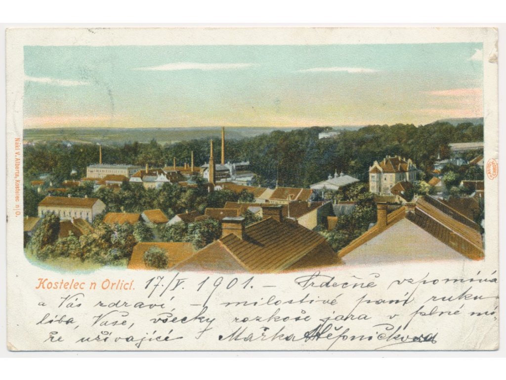 57 - Rychnovsko, Kostelec nad Orlicí, celkový pohled, cca 1900