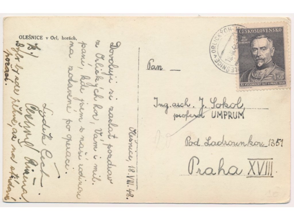 pohlednice prošlá poštou, stav odpovídá použití, uložení a stáří