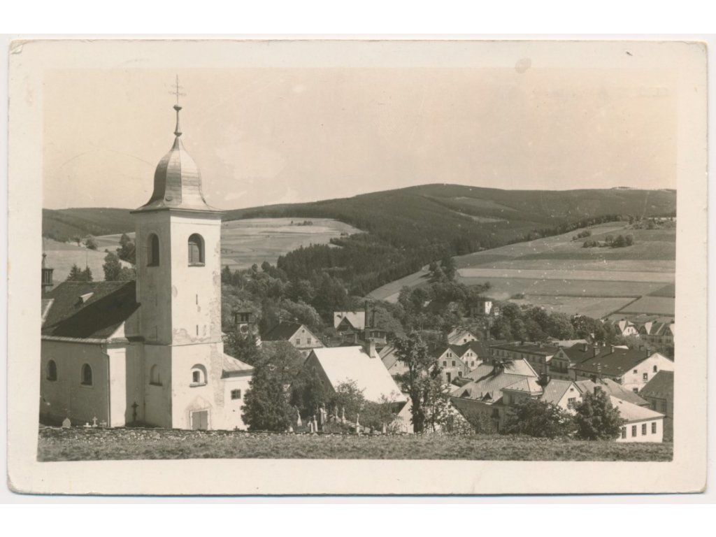 57 - Rychnovsko, Olešnice v Orl. horách, pohled na obec, kostel, cca 1948
