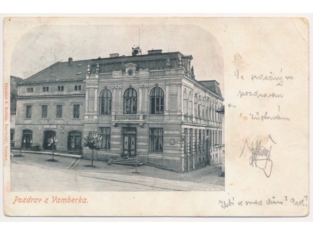 57 - Rychnovsko, Vamberk, Měšťanská škola, prošlá poštou 1903