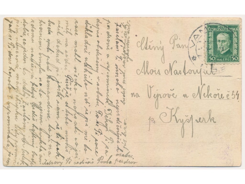 60 - Strakonicko, Helfenburk, pohled na zříceninu hradu, cca 1938, vada - lom v růžku