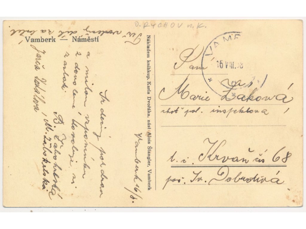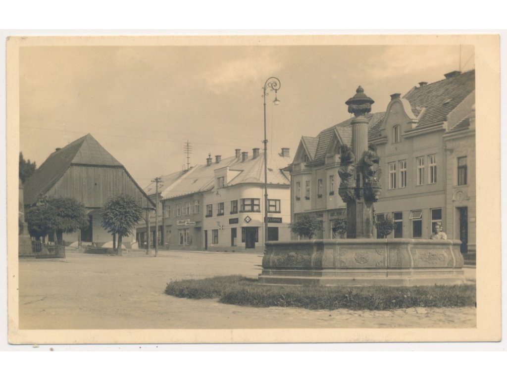57 - Rychnovsko, Vamberk, partie u kašny na náměstí, cca 1938