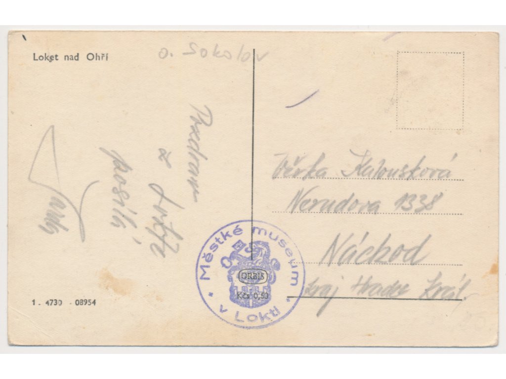 59 - Sokolovsko, Loket, pohled na město, cca 1949
