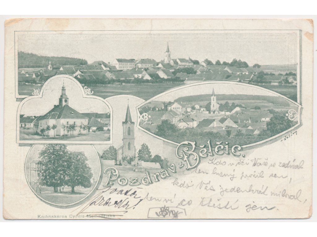 60 - Strakonicko, Bělčice, 5-ti záběrová koláž dominant města, 1899