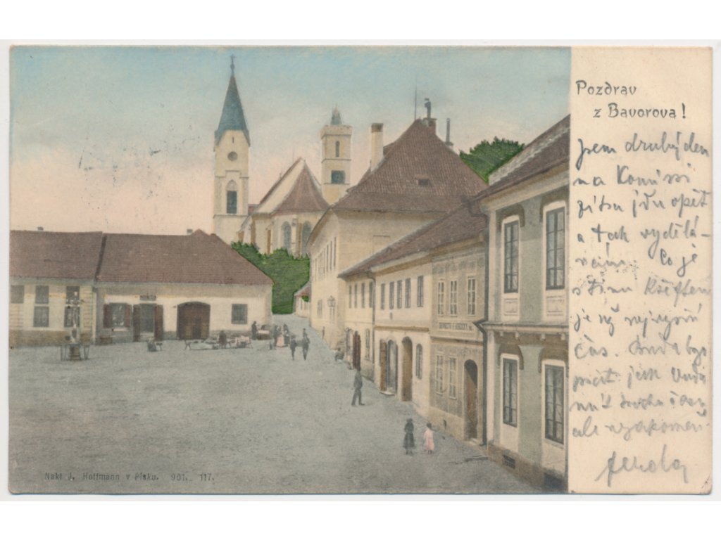 60 - Strakonicko, Bavorov, oživená partie z náměstí, cca 1901