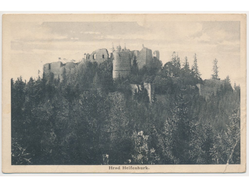 60 - Strakonicko, Helfenburk, pohled na zříceninu hradu, cca 1938, vada - lom v růžku