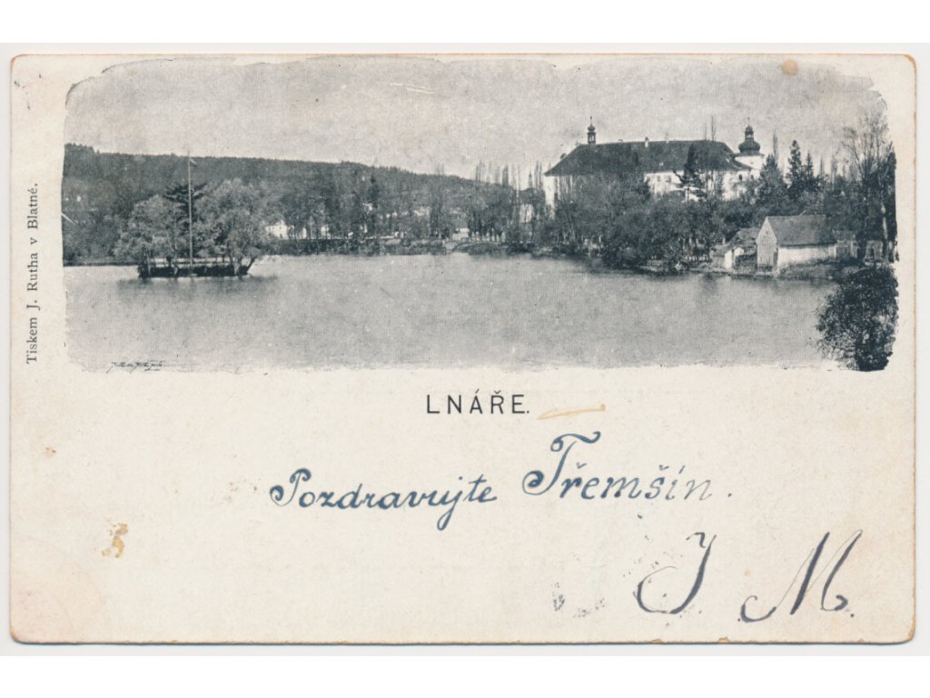60 - Strakonicko, Lnáře, pohled na zámek od zámeckého rybníku, cca 1898
