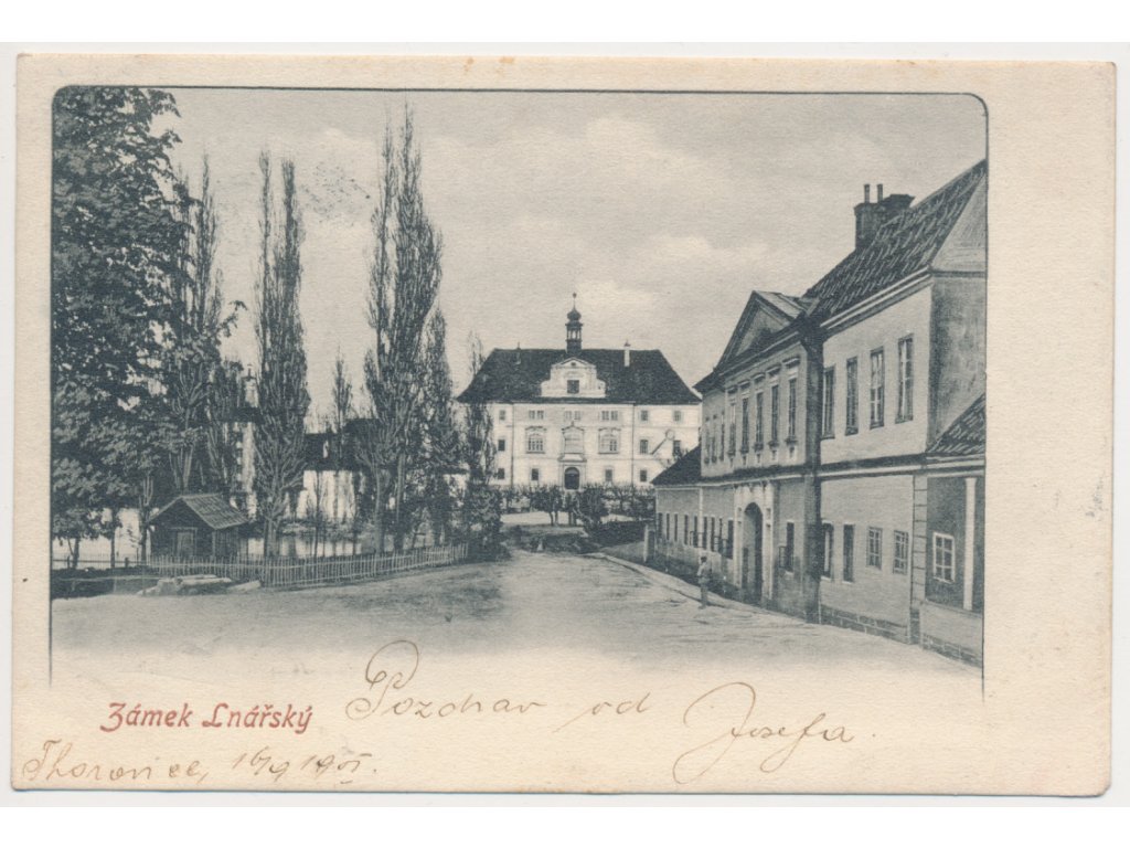 60 - Strakonicko, Lnáře, Zámek a domy v okolí, cca 1901