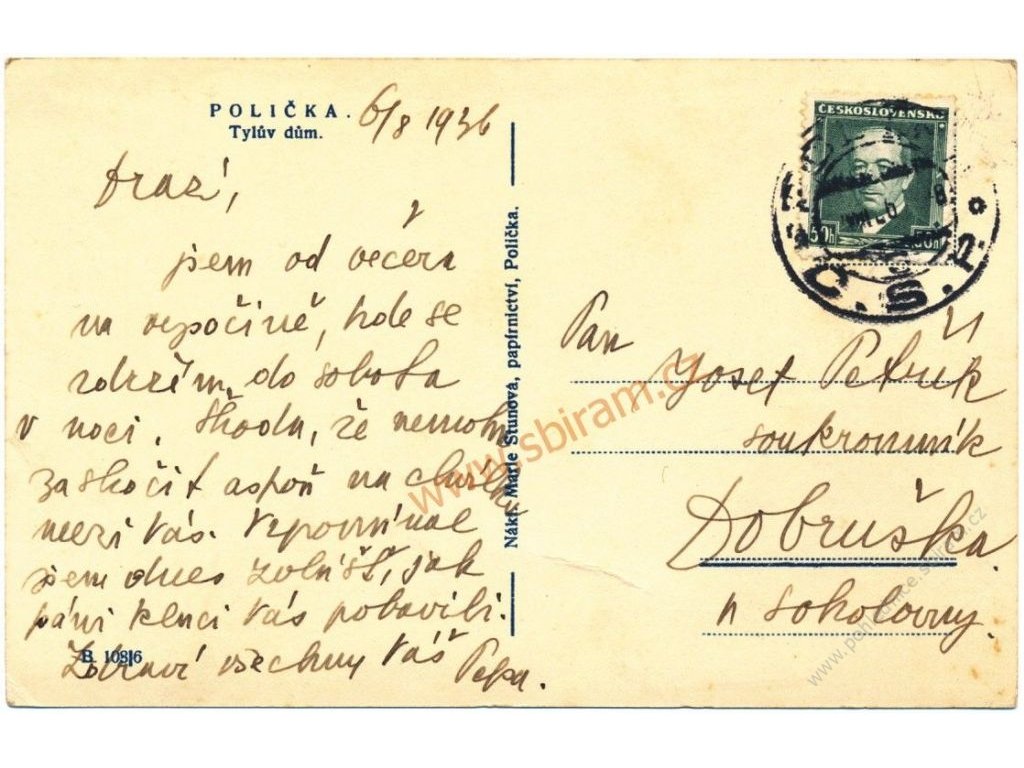 61 - Svitavsko, Polička, Tylův dům, nákl. M. Stunová, cca 1936
