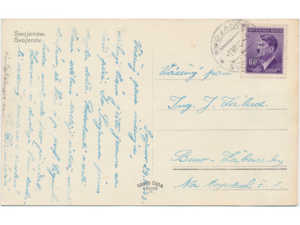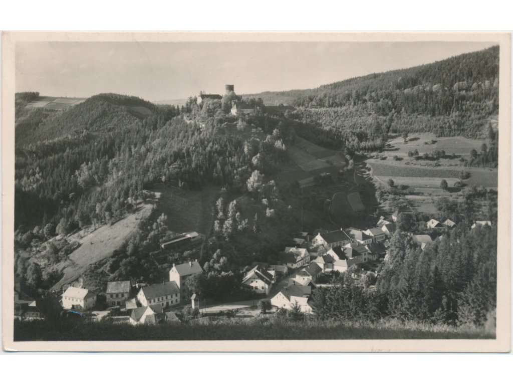 61 - Svitavsko, Svojanov, celkový pohled na městys s hradem, 1943