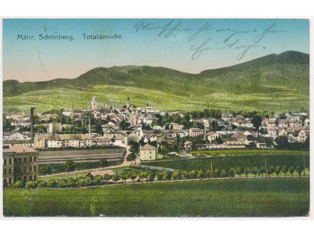 62 - Šumperk (Mähr. Schönberg), celkový pohled na město, cca 1916