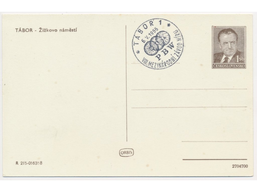 64 - Tábor, oživené Žižkovo náměstí, cca 1955