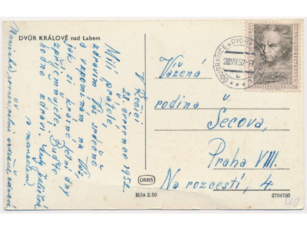 pohlednice prošlá poštou, stav odpovídá použití, uložení a stáří