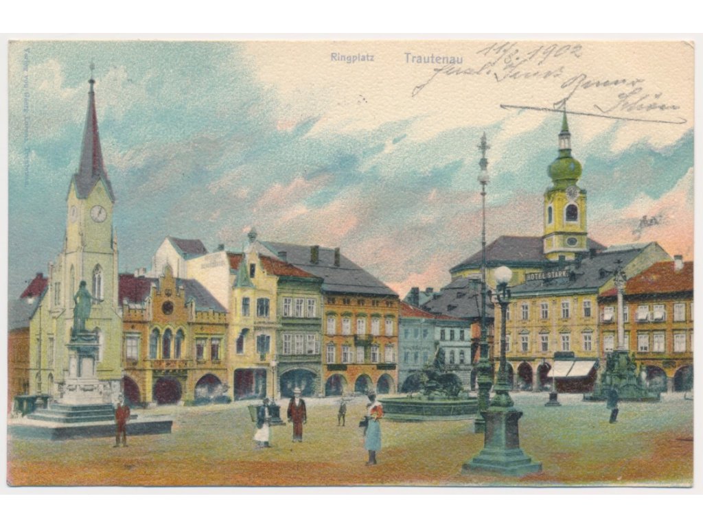 66 - Trutnov, Ringplatz, oživené náměstí, prošlé poštou 1902