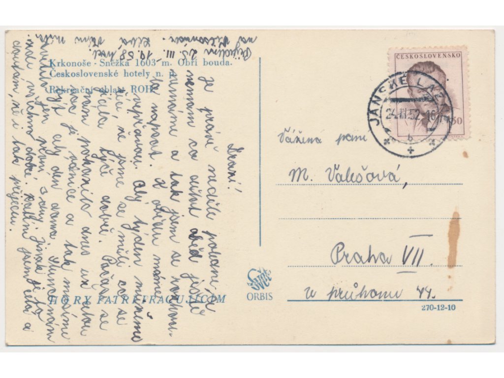 66 - Trutnovsko, Krkonoše, zaniklá Obří bouda, Sněžka, cca 1952