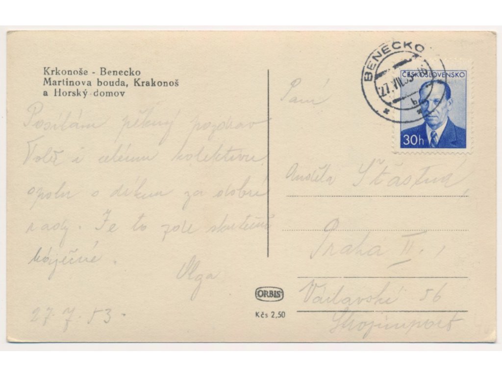 66 - Trutnovsko, Špindlerův Mlýn, Martinova bouda, Krakonoš a Horský domov, 1953