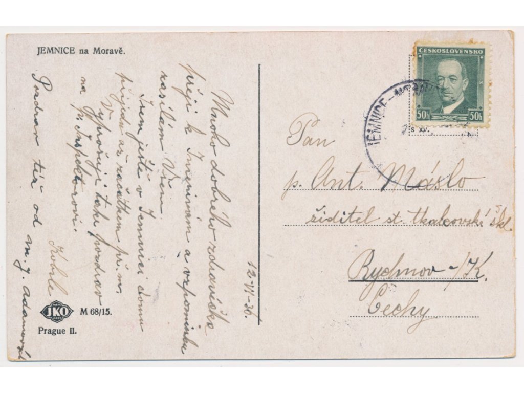 67 - Třebíčsko, Jemnice, pohled na město, cca 1936