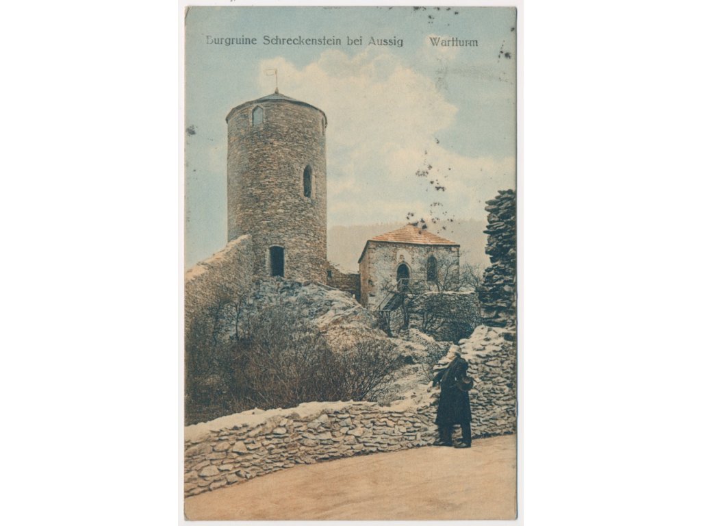 69 - Ústí nad Labem, oživená partie u zříceniny hradu Střekov, cca 1920