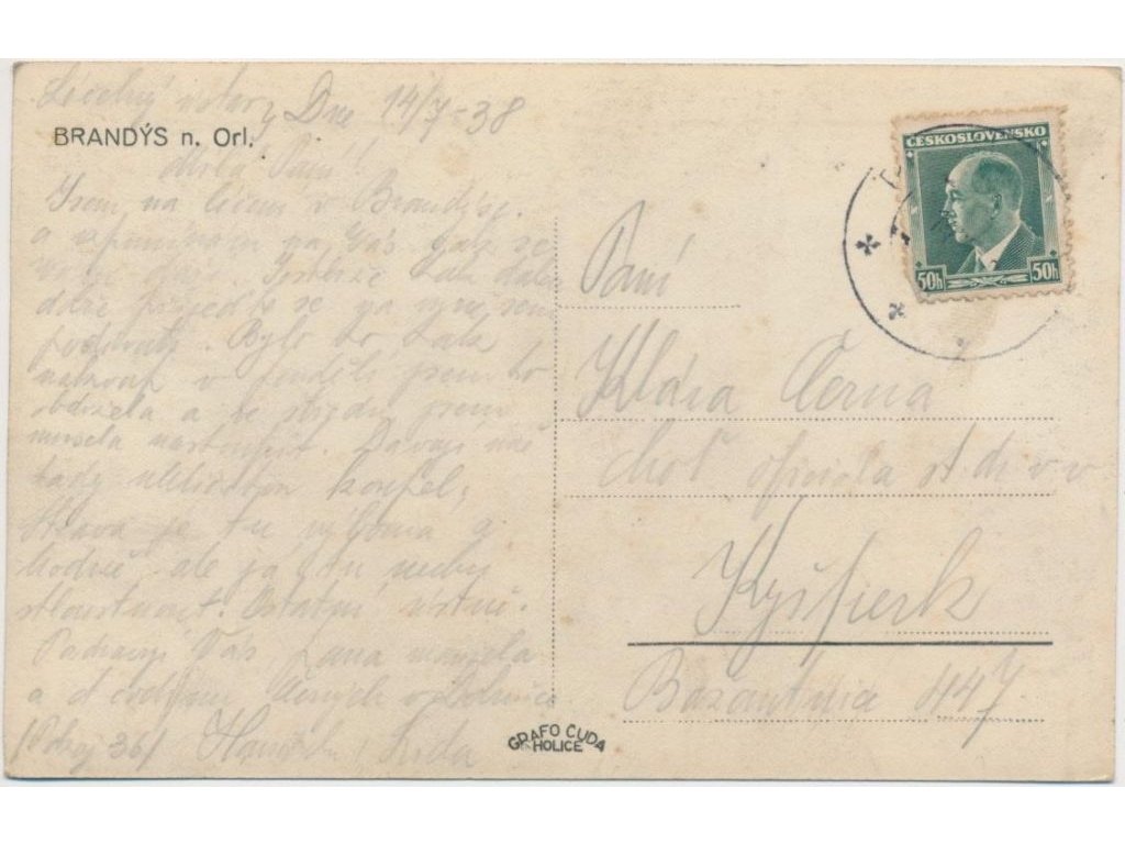 70 - Orlickoústecko, Brandýs nad Orlicí, celkový pohled, cca 1938