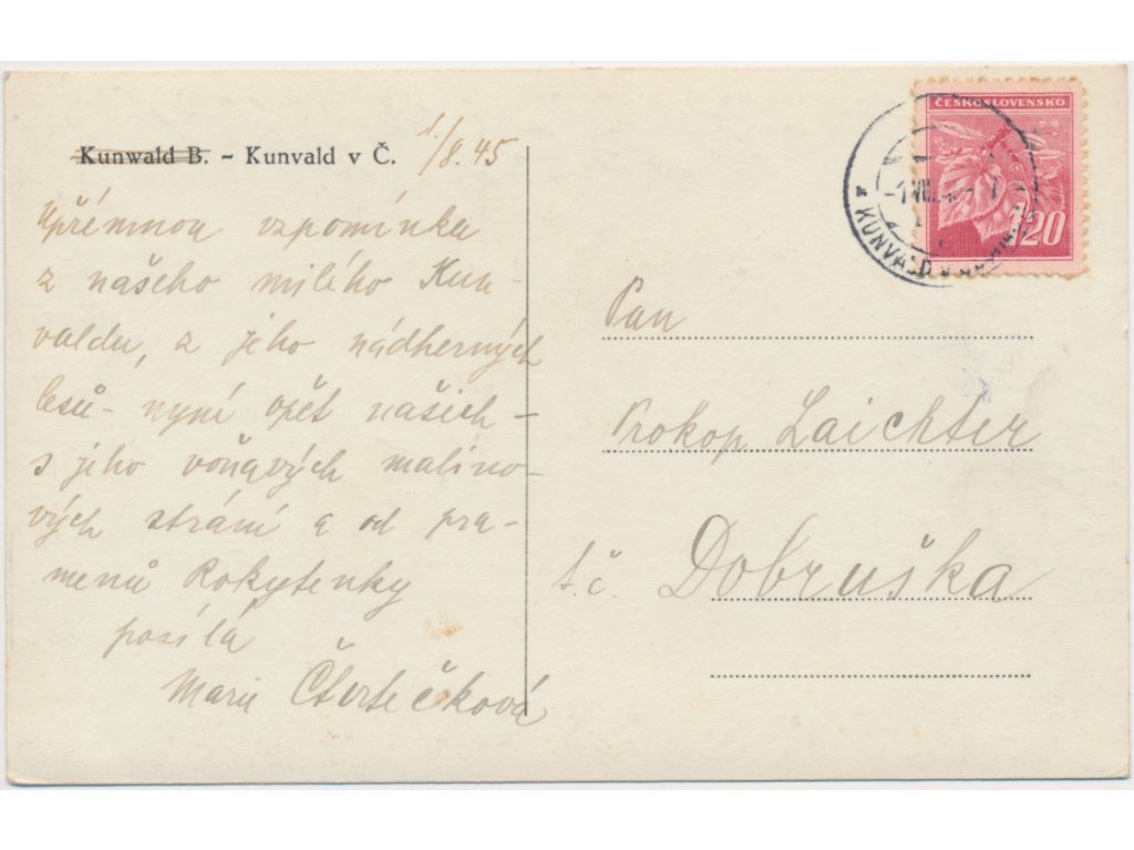 70 - Orlickoústecko, Kunvald, celkový pohled na městys, cca 1945