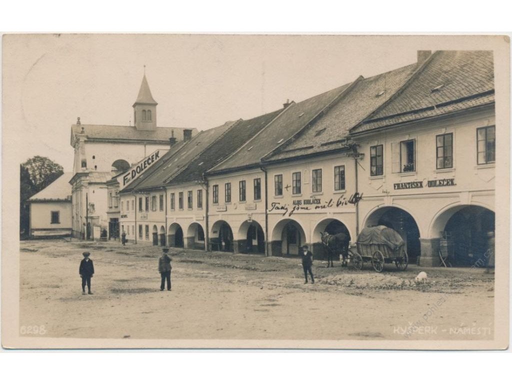 70 - Orlickoústecko, Kyšperk, oživené náměstí s obchody, cca 1930