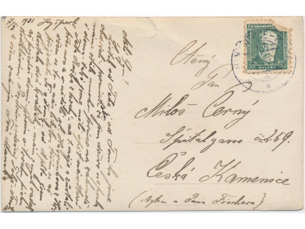 pohlednice prošlá poštou, stav odpovídá použití, uložení a stáří