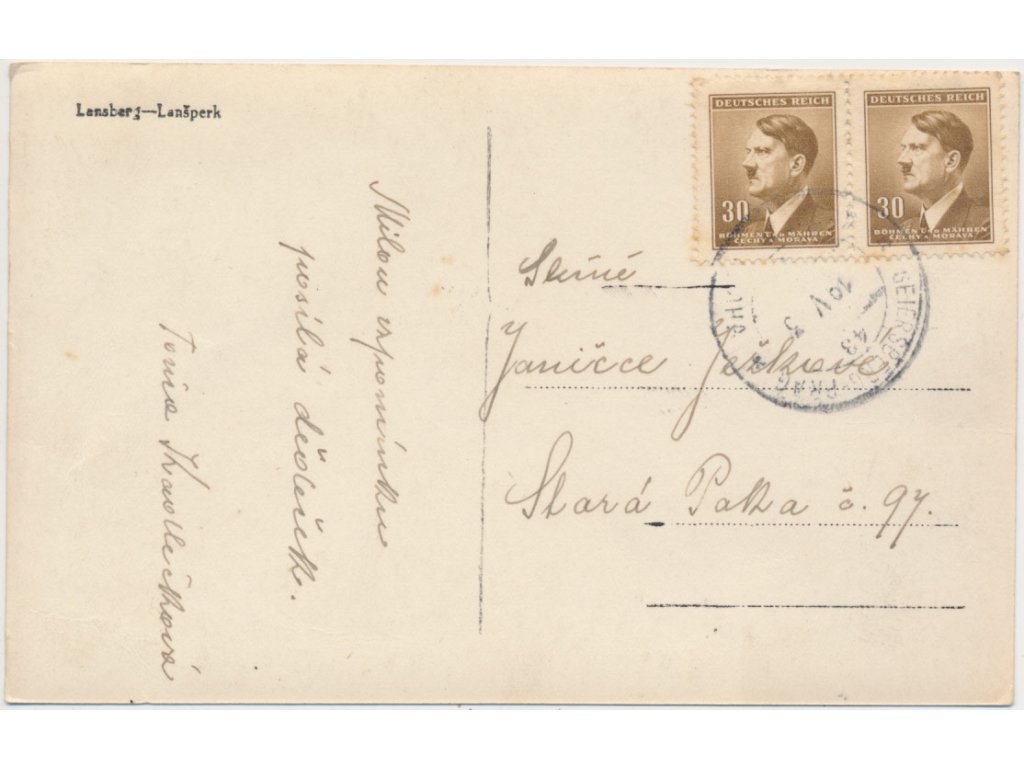 70 - Orlickoústecko, Lanšperk, pohled na obec s kaplí, cca 1943