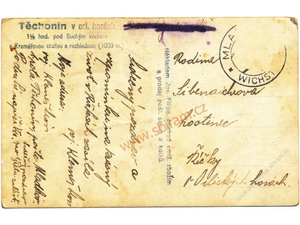 70 - Orlickoústecko, Těchonín v Orl. horách, nákl. J. Filip, cca 1935