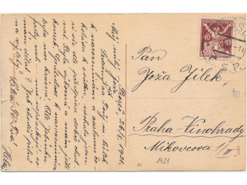 pohlednice prošlá poštou, stav odpovídá použití, uložení a stáří