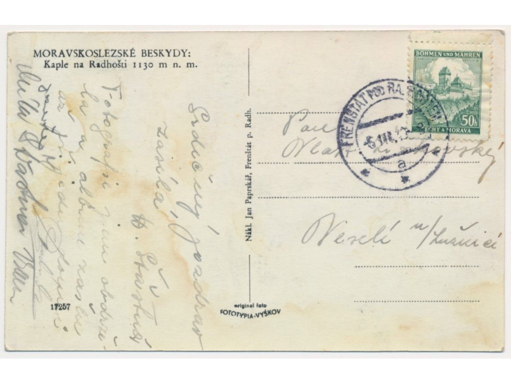 71 - Vsetínsko, Kaple na Radhošti, oživená zimní partie, cca 1940