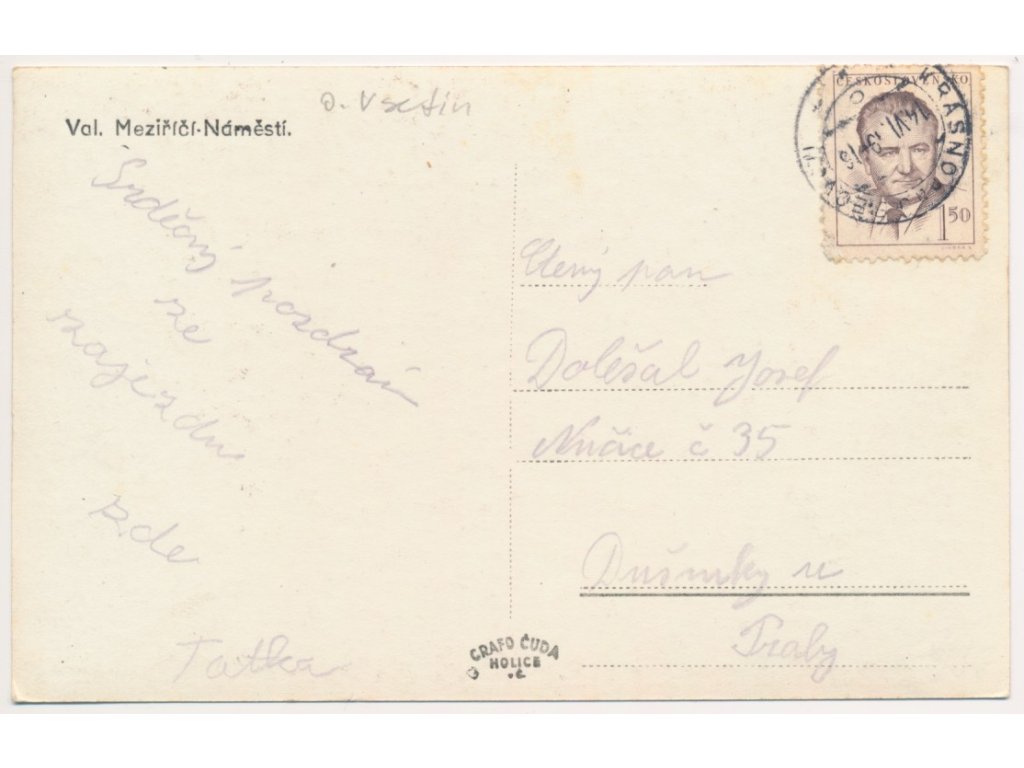 71 - Vsetínsko, Valašské Meziříčí, oživené náměstí, cca 1949