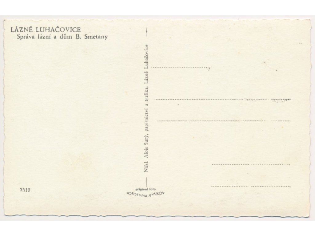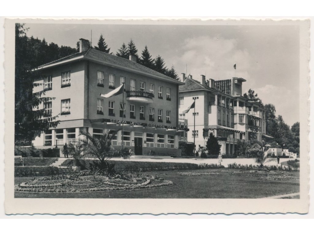 73 - Zlínsko, Luhačovice, Správa lázní a dům B. Smetany, cca 1949