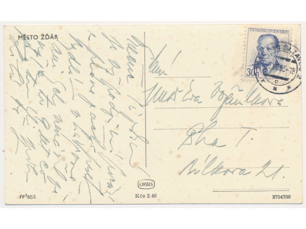 75 - Žďár nad Sázavou, pohled na město, zámek, cca 1953