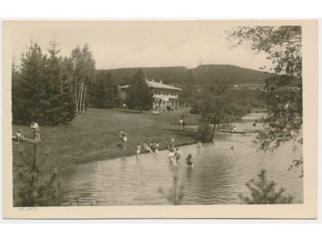 75 - Žďársko, Milovy, oživená partie u hotelu Devět Skal, cca 1955