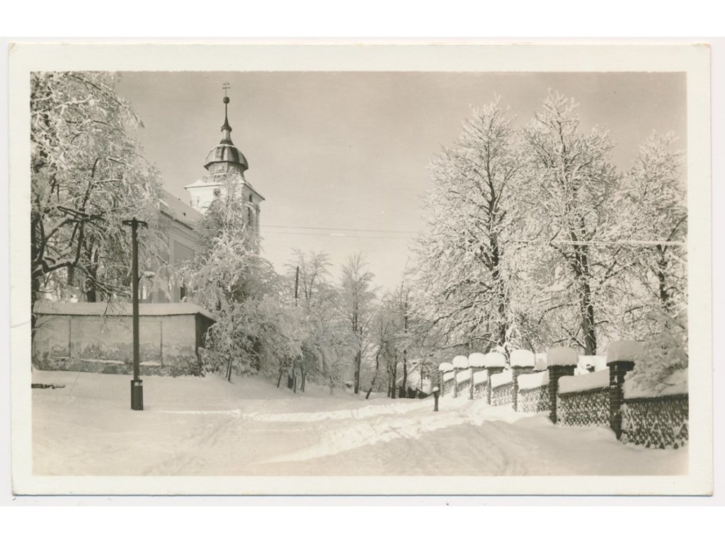 75 - Žďársko, Sněžné, partie ze zasněžené vesnice, cca 1949