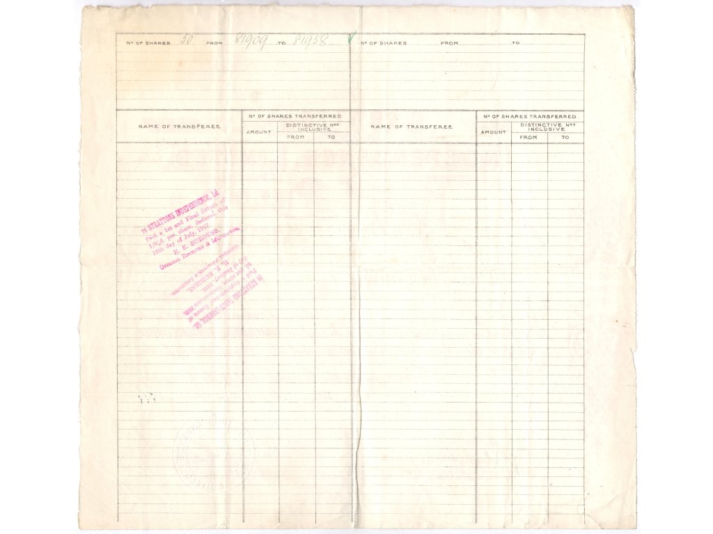 Akcie, Strattons Independence Limited, akcie na 2 Pence a 6 Šilinků, 1908