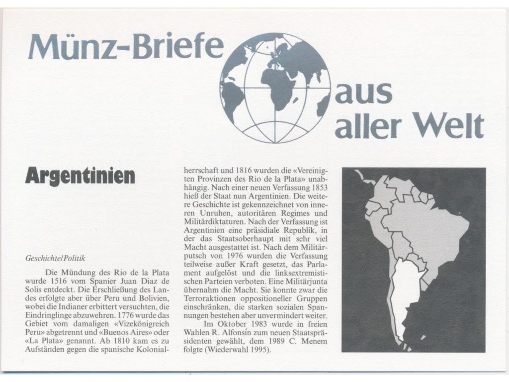 Argentina, mincovní dopis,rozměr 12,7 x 17,7 cm,1998, sběratelský stav
