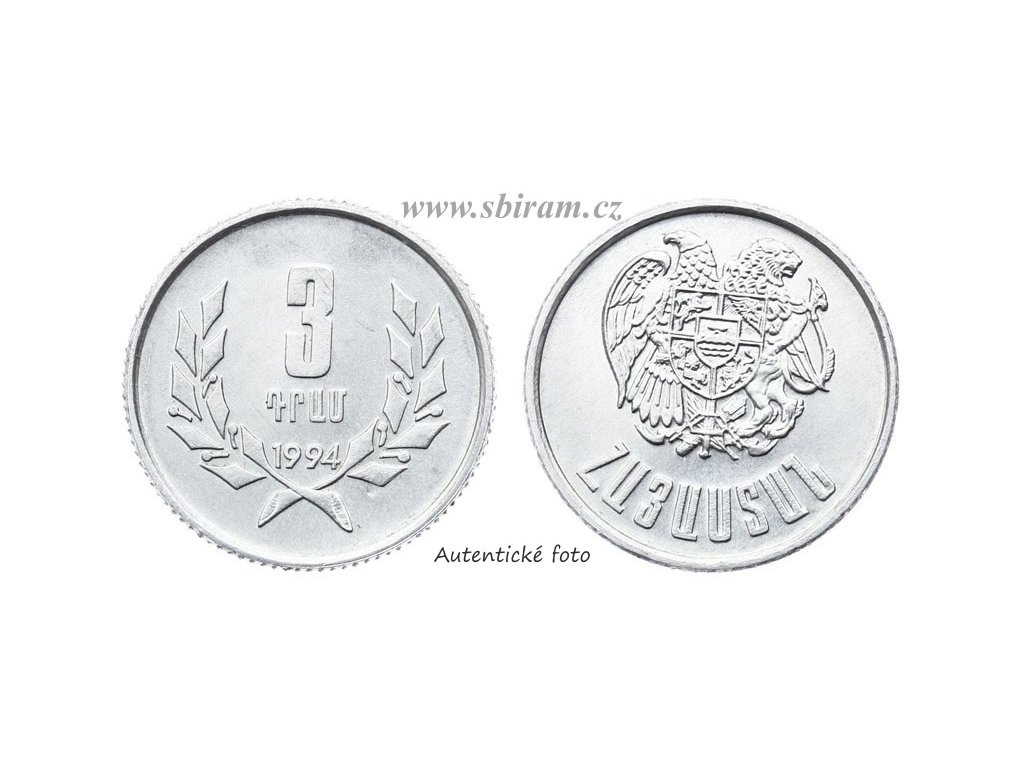 Arménie, mince 3 Dram, 1994...viz autentické foto
