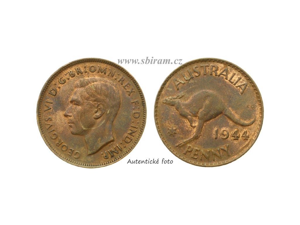 Austrálie, mince 1 Penny, 1944, stav 1/1...viz autentické foto